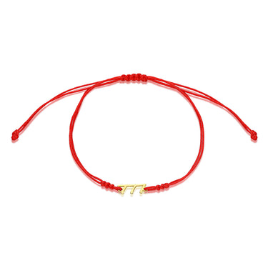 Kırmızı İpli 777 Figürlü Altın Kaplama Bileklik - 925 Ayar Gümüş