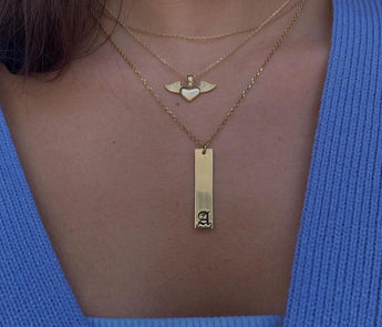 Dikey Plaka Harf Kolye - 925 Ayar Gümüş | Cielza