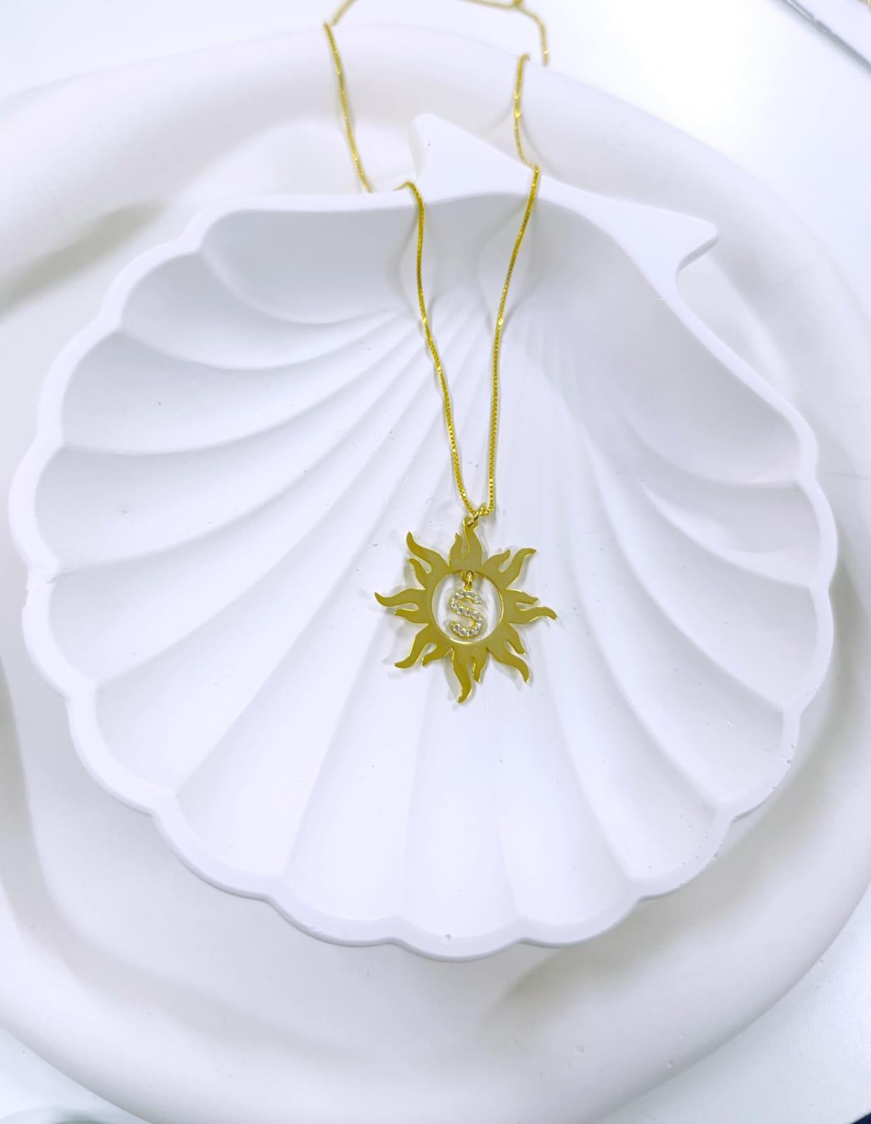 Harfli Taşlı Güneş Kolye- 925 Ayar Gümüş | Cielza