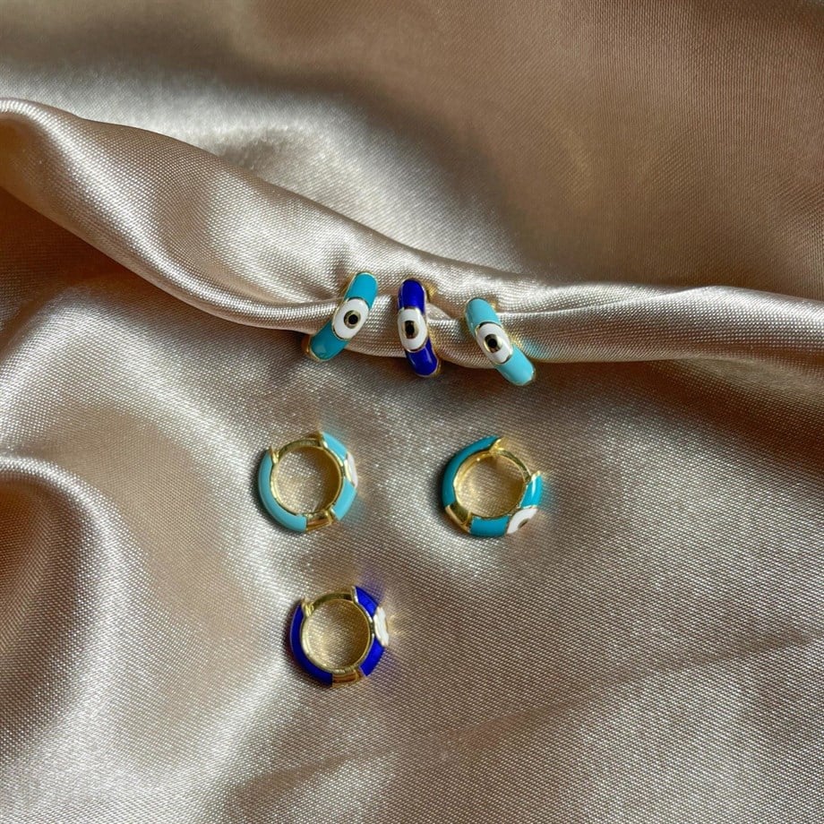 Renkli Mineli Göz Halka Küpe (13 mm) - 925 Ayar Gümüş | Cielza