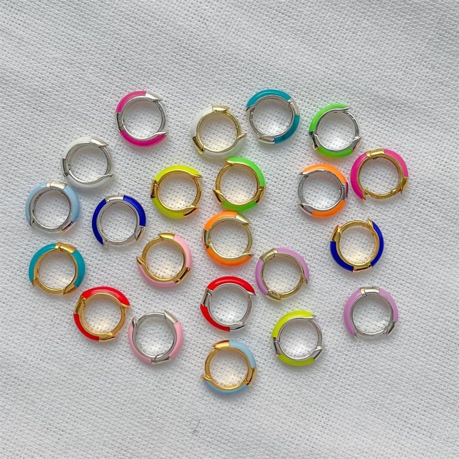Renkli Mineli Halka Küpe - 925 Ayar Gümüş | Cielza