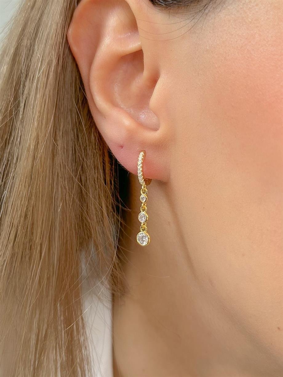 Sallantılı 3 Sıra Taşlı Küpe - 925 Ayar Gümüş | Cielza
