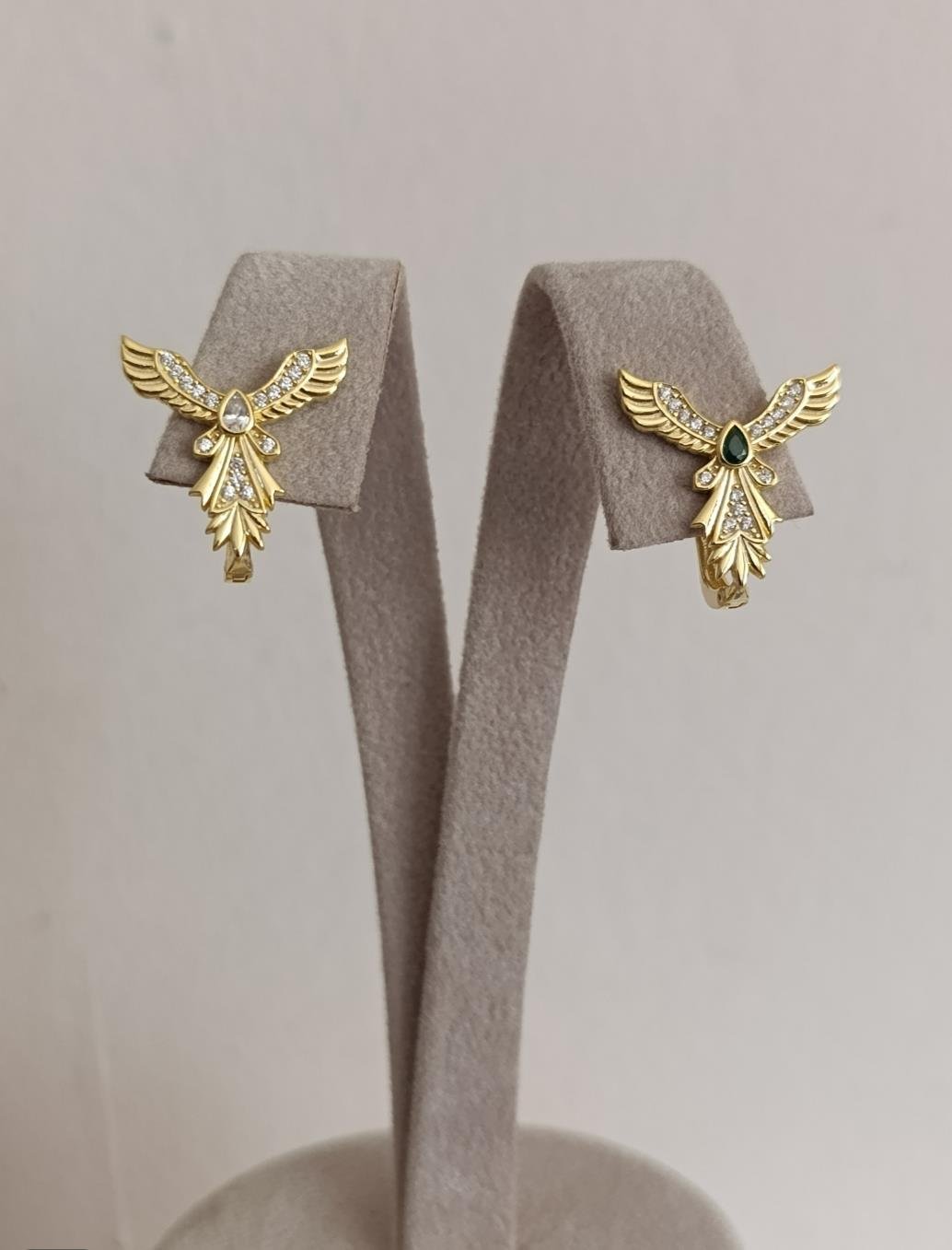 Taşlı Anka Kuşu Küpe (Model 1)- 925 Ayar Gümüş | Cielza