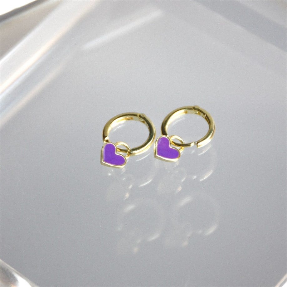 Minik Kalp Küpe - Mor - 925 Ayar Gümüş | Cielza