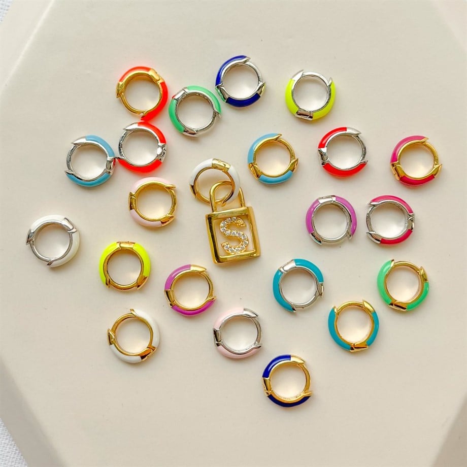 Renkli Mineli Harf Halka Küpe - 925 Ayar Gümüş | Cielza