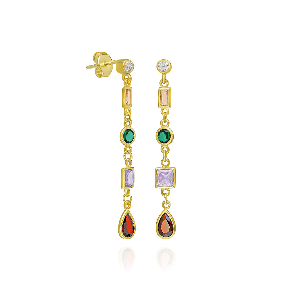 Renkli Zirkon & Doğal Taşlı Altın Kaplamalı Küpe - 925 Ayar Gümüş