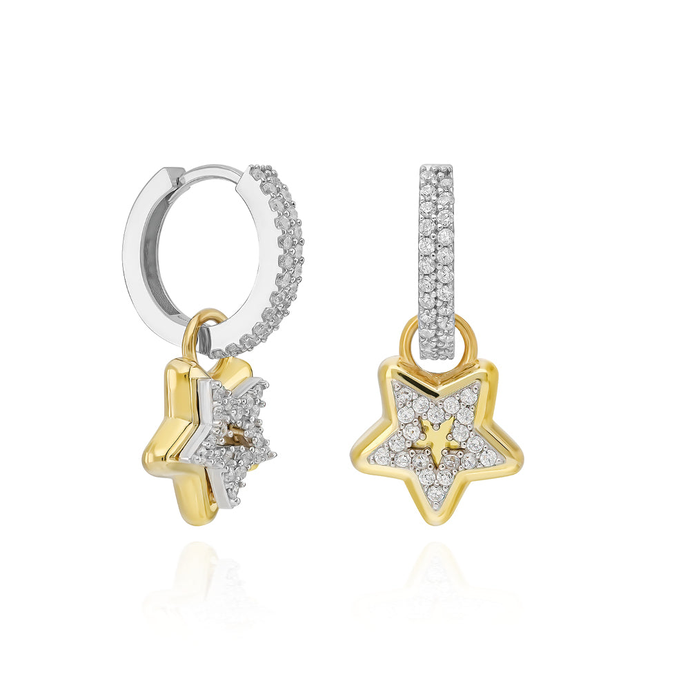 Yıldız Figürlü Zirkon Taşlı Halka Küpe - 925 Ayar Gümüş