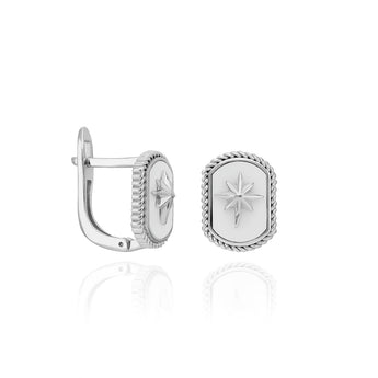 Beyaz Mineli Kuzey Yıldızı Dikdörtgen Küpe - 925 Ayar Gümüş