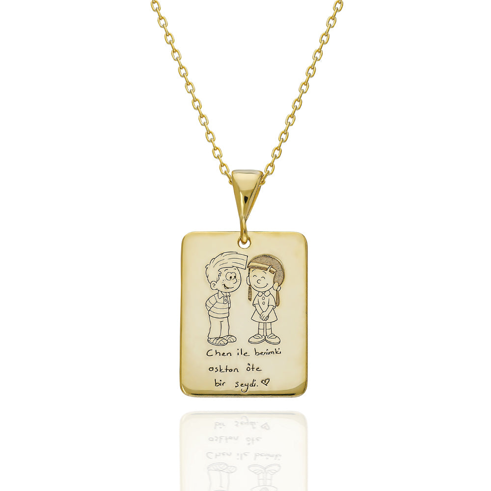 Kişiselleştirilebilir Resimli Plaka Kolye (Chen & Cedric) - 925 Ayar Gümüş