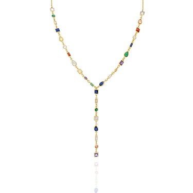 Renkli Zirkon Taşlı Y model Kolye I 925 Ayar Gümüş