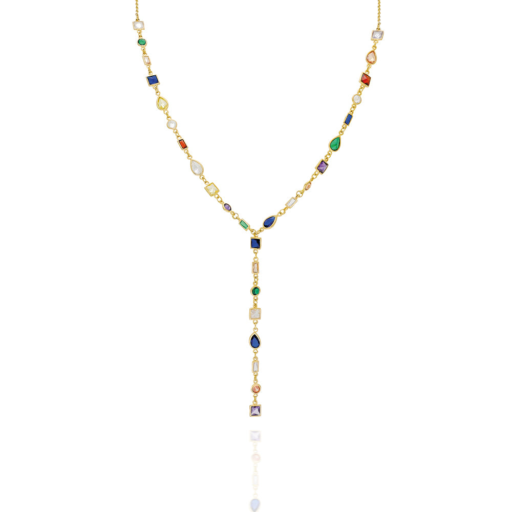 Renkli Zirkon Taşlı Y model Kolye I 925 Ayar Gümüş