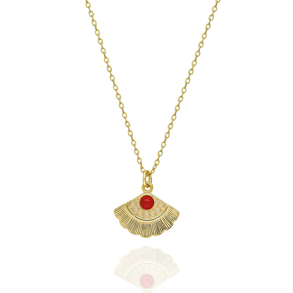 Yelpaze Figürlü Kırmızı Taşlı Kolye - 925 Ayar Gümüş