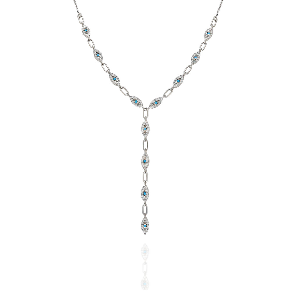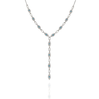 Doğal Mavi Taşlı Marquise Kesim Y Kolye - 925 Ayar Gümüş