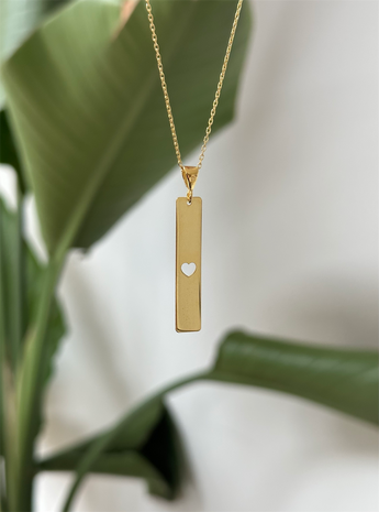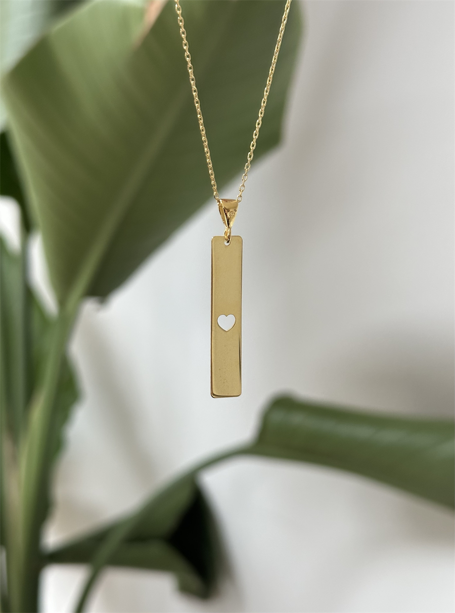 Kalp Figürlü Dikey Plaka Kolye - 925 Ayar Gümüş | Cielza