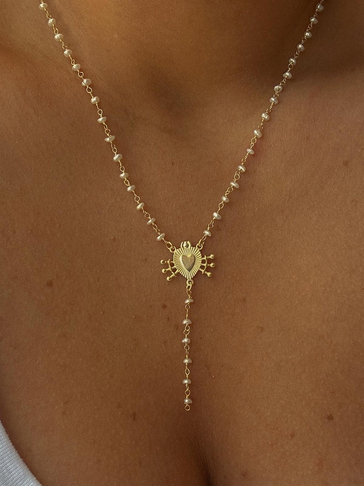 Kalpli İncili Y Zincir Kolye - 925 Ayar Gümüş | Cielza