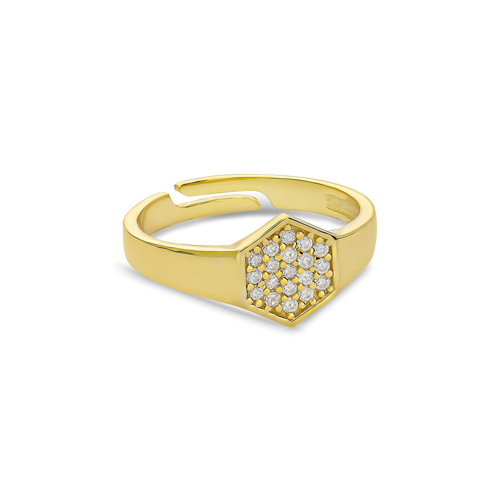 Beşgen Figürlü Ortası Taşlı Yüzük - 925 Ayar Gümüş