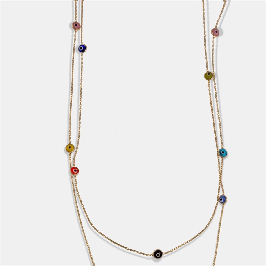 Çift Sıra Mineli Göz Kolye - 925 Ayar Gümüş | Cielza