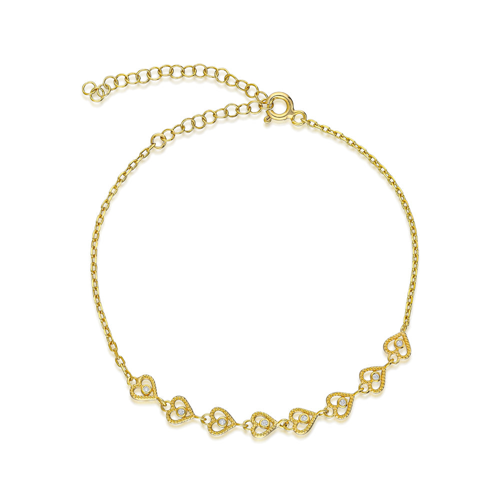 Kalp Figürlü Altın Kaplama Zincir Bileklik - 925 Ayar Gümüş
