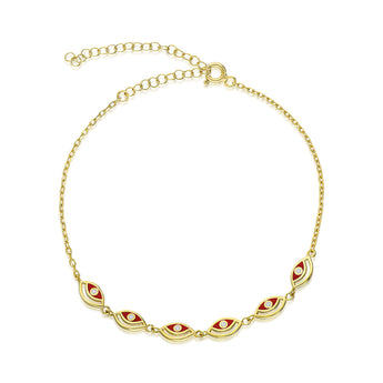 Kırmızı Mineli Nazar Figürlü Altın Kaplama Bileklik - 925 Ayar Gümüş