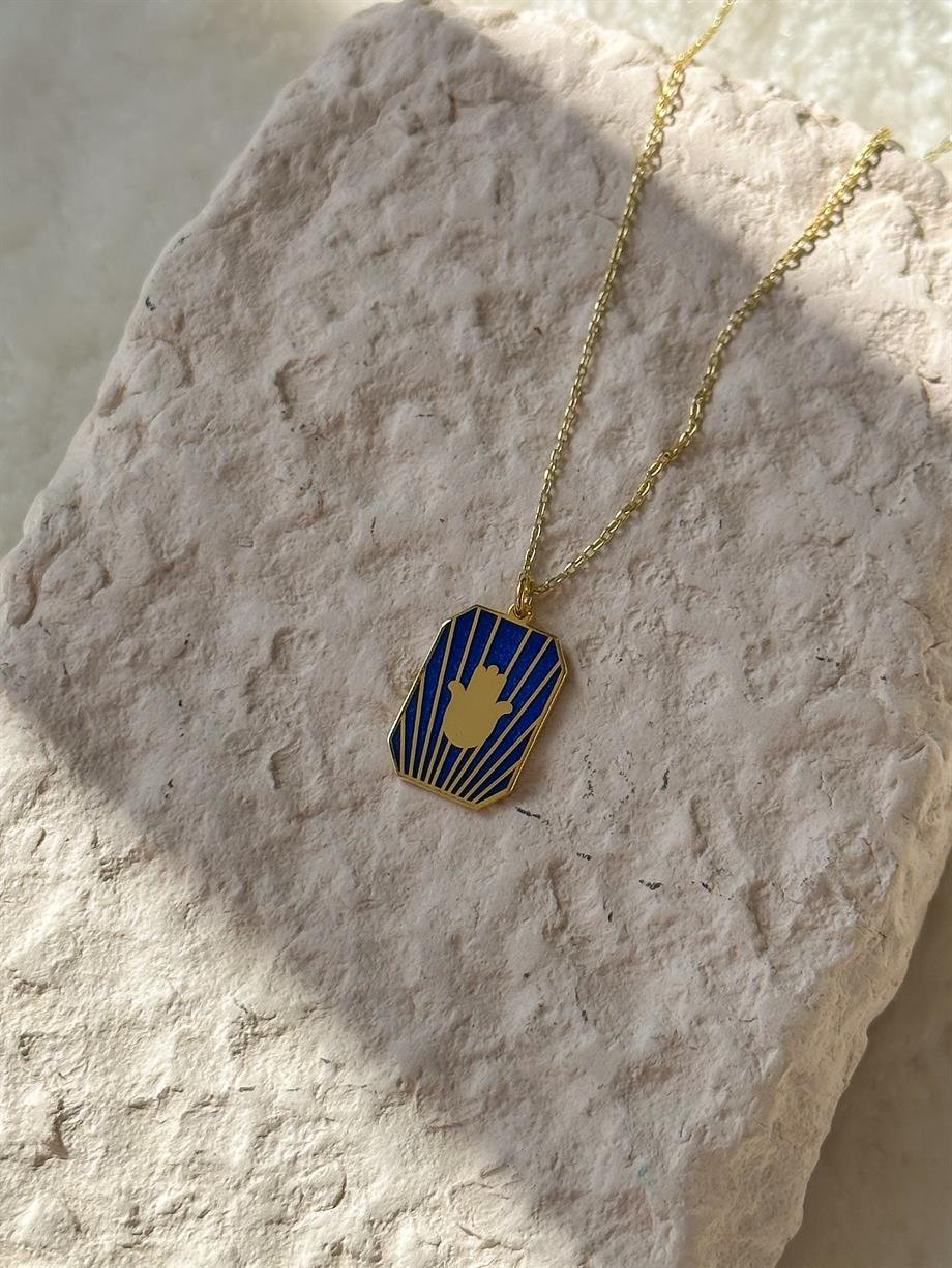 Lacivert Mineli Desenli Fatma Ana Eli Kolye - 925 Ayar Gümüş | Cielza
