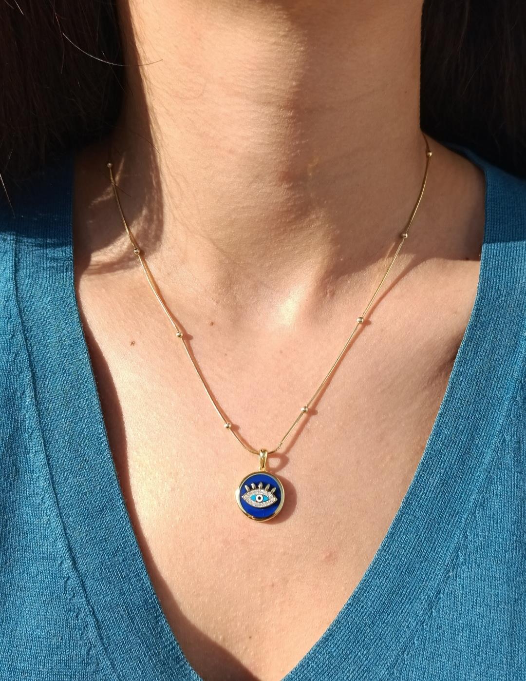 Lacivert Mineli Taşlı Yuvarlak Göz Kolye- 925 Ayar Gümüş | Cielza