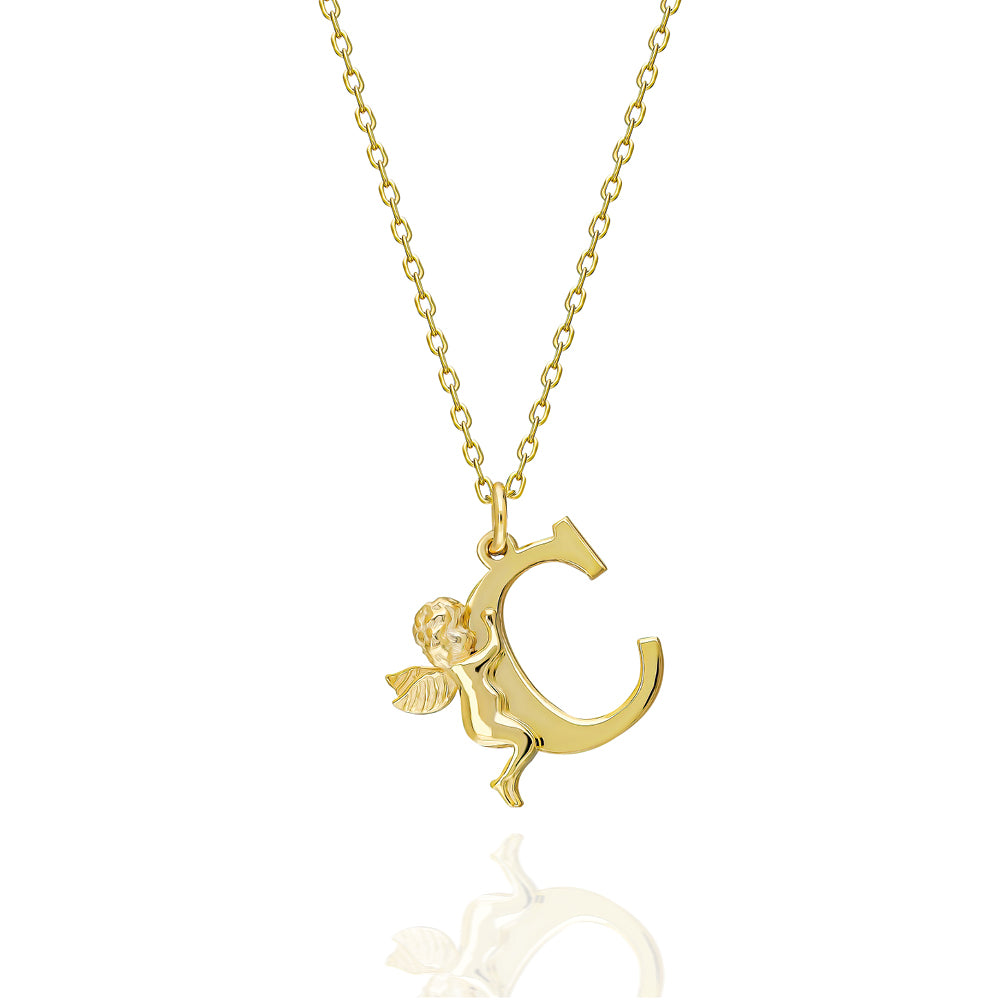 Melek Detaylı Kişiselleştirilmiş Harf Kolye | 925 Ayar Gümüş