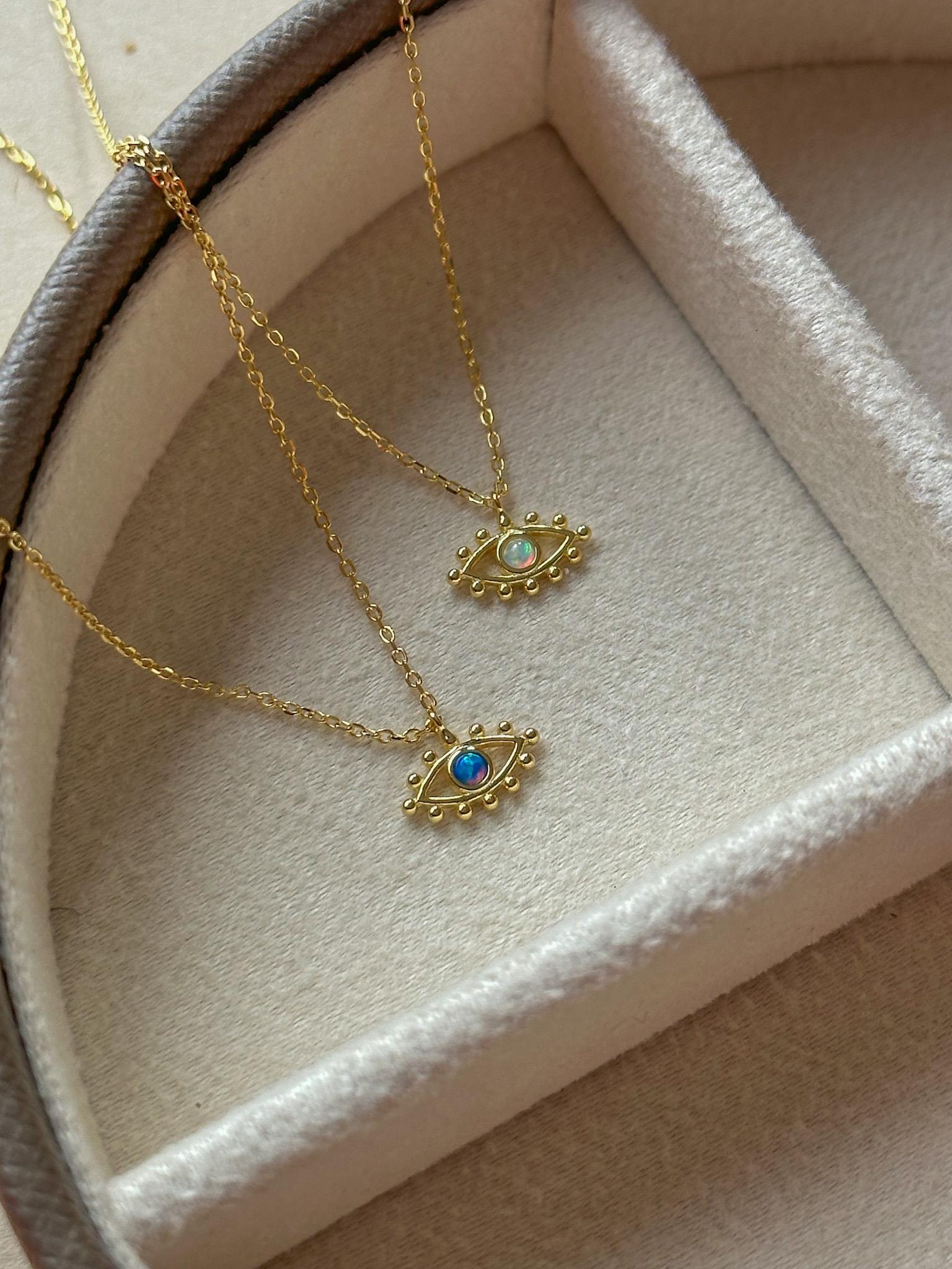Minik Opal Taşlı Göz Kolye - 925 Ayar Gümüş | Cielza