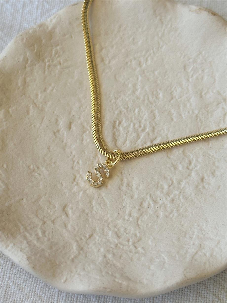 Minik Taşlı Harfli Yassı Zincir Kolye - 925 Ayar Gümüş | Cielza