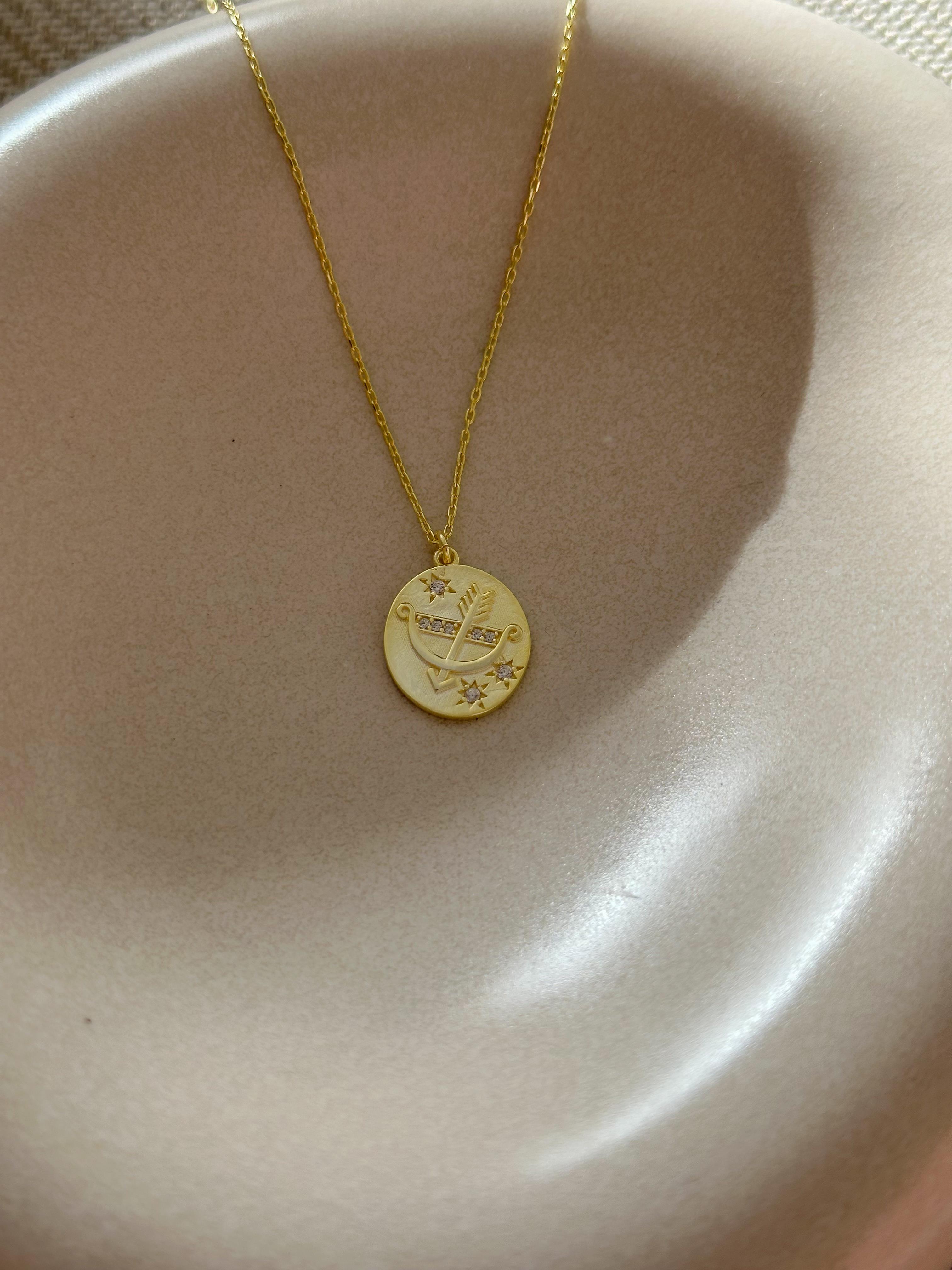 Ok Figürlü Madalyon Kolye - 925 Ayar Gümüş | Cielza