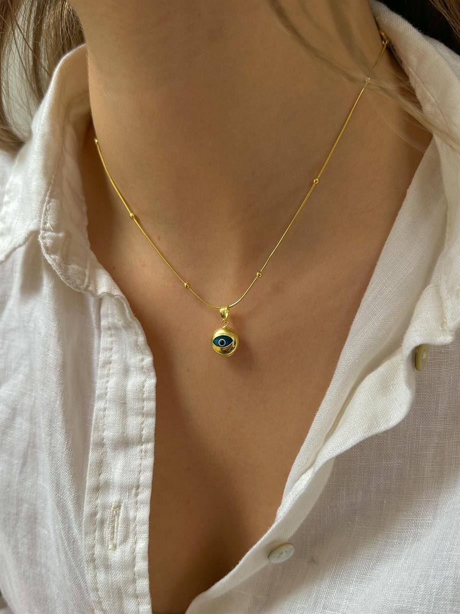 Oval Göz Figürlü Kolye - 925 Ayar Gümüş | Cielza