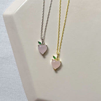 Pembe Taşlı Elma Figürlü Kolye - 925 Ayar Gümüş | Cielza