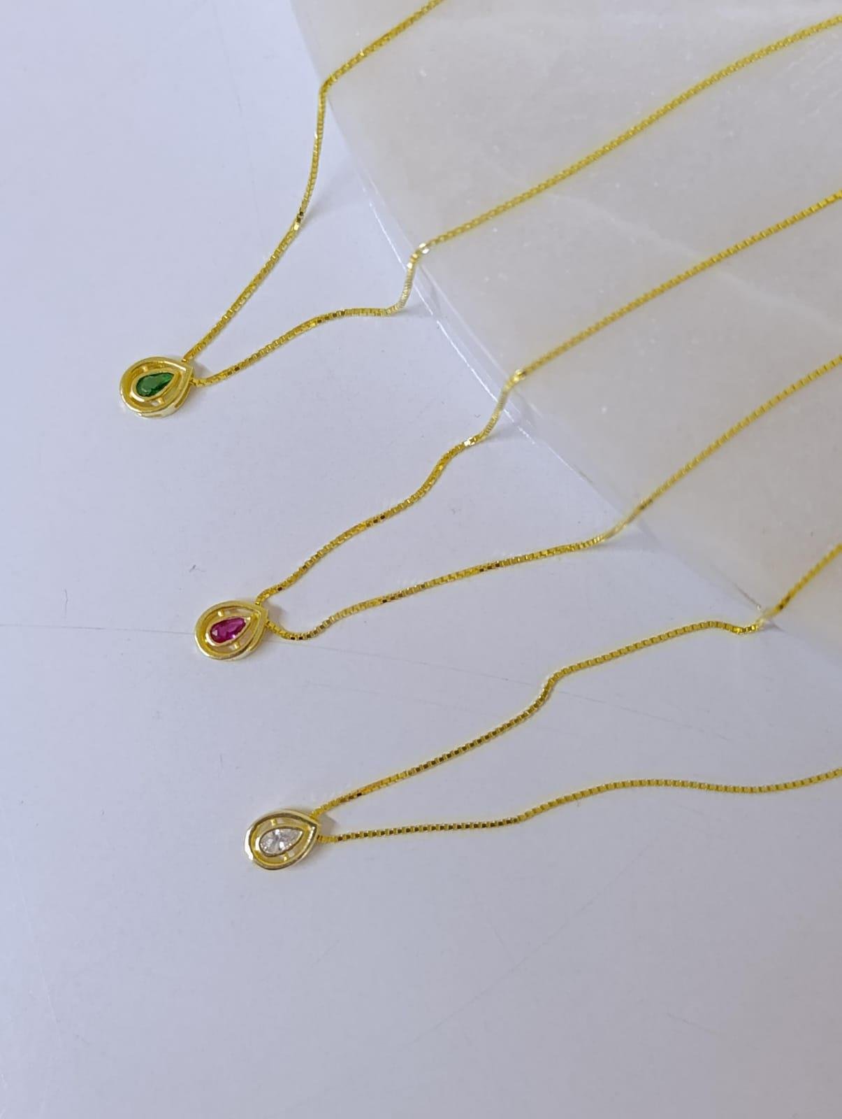 Renkli Taşlı Mini Oval Kolye- 925 Ayar Gümüş | Cielza