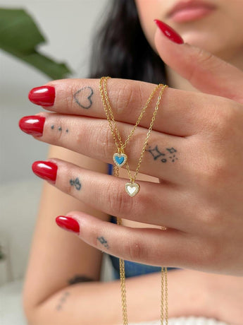 Renkli Taşlı Minik Kalp Kolye - 925 Ayar Gümüş | Cielza