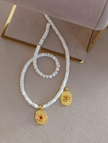 Sedef Taşlı Göz Plaka Kolye - 925 Ayar Gümüş | Cielza