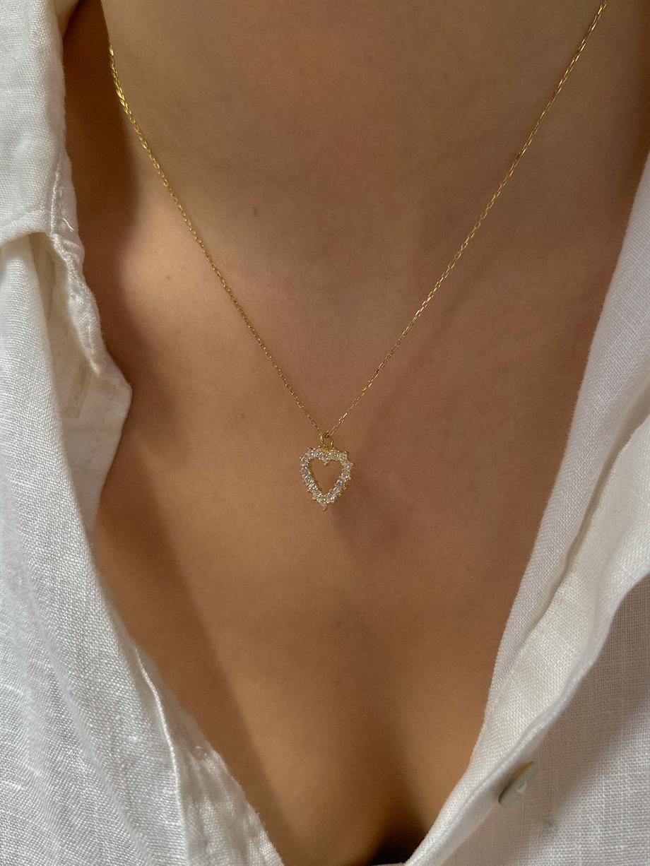 Taşlı Kalp Figürlü Kolye - 925 Ayar Gümüş | Cielza