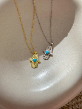 Turkuaz Taşlı Fatma Ana Eli Kolye - 925 Ayar Gümüş | Cielza