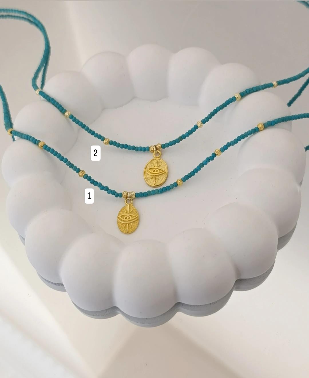 Turkuaz Taşlı Plaka Göz Kolye - 925 Ayar Gümüş | Cielza