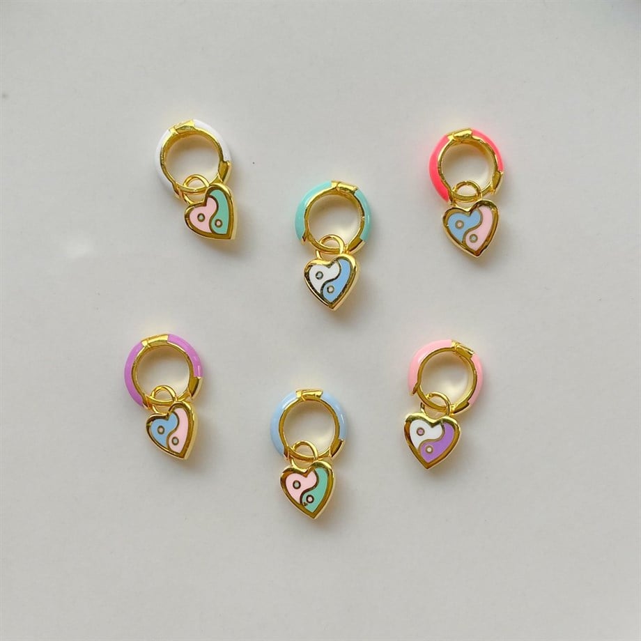 Yin Yang Kalp Figürlü Halka Küpe - 925 Ayar Gümüş | Cielza
